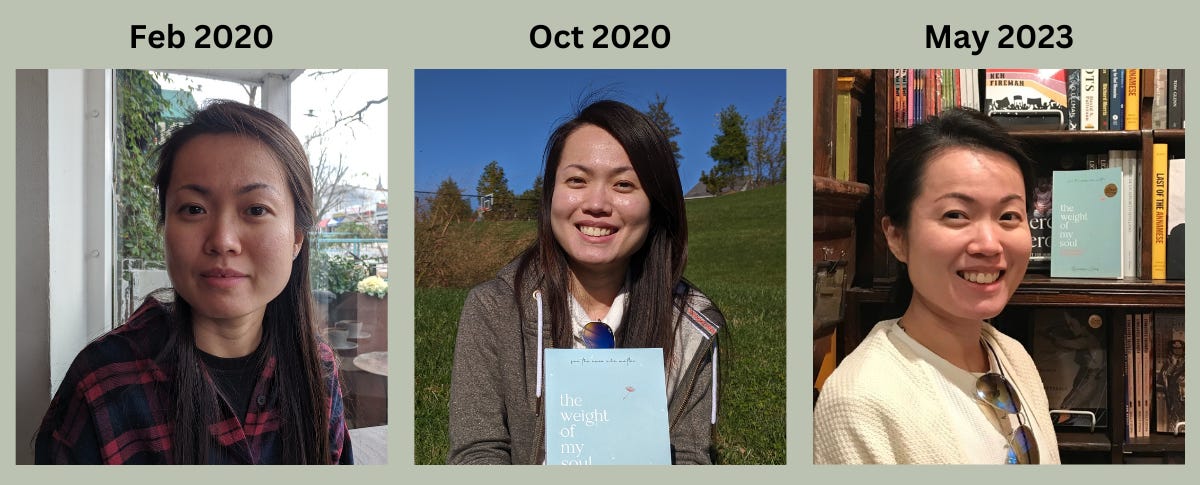 May 2023: A relaunch and revival of my book through a consignment with Kensington Row Bookshop under its Local Authors program, with hopes for my gift to meet more people. Still some tentativeness, along with a quiet joy and groundedness, this body can now hold itself, and afford to be occasionally full of myself.